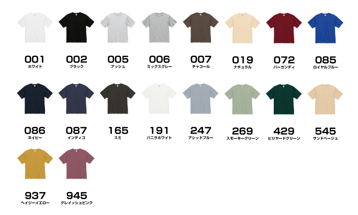 カラー:XS-XL 500円 / XXL 630円 (税抜)