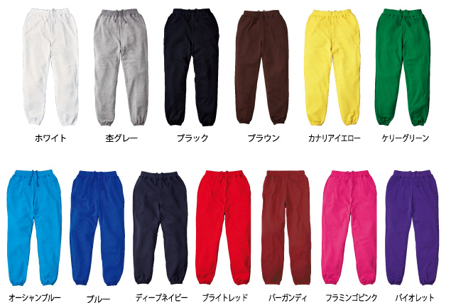 スタイリッシュなスウェットパンツ 軽めの素材を使ったライトな着心地。 ビビッドなカラーでお尻にプリントもOK! 13色×6サイズ展開です。