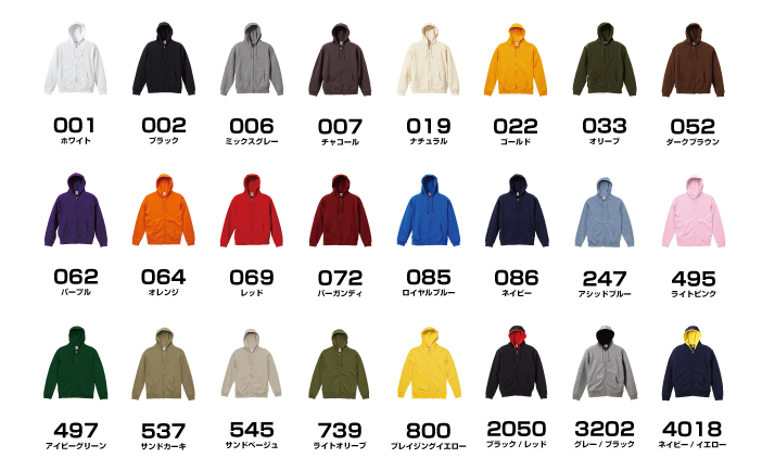 豊富なカラーとサイズが魅力。二重フードで存在感のあるフルジップパーカ